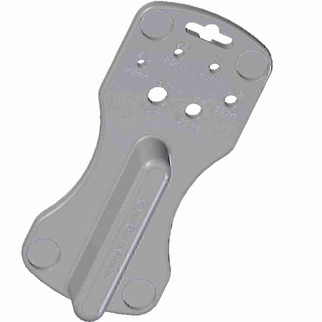- Plantilla guía con 6 diámetros: 5-6-6,5-8-10 y 12 mm