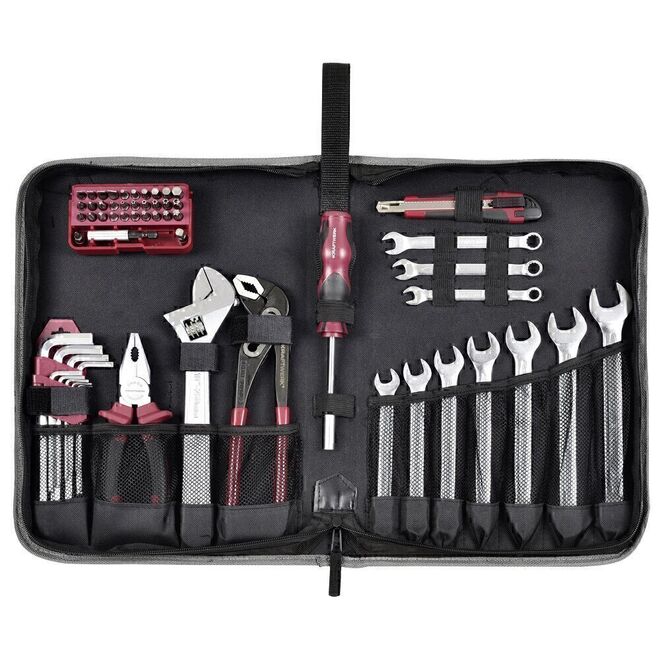 • BASIC LINE, Estuche textil de herramientas con cremallera, 57 pzas.