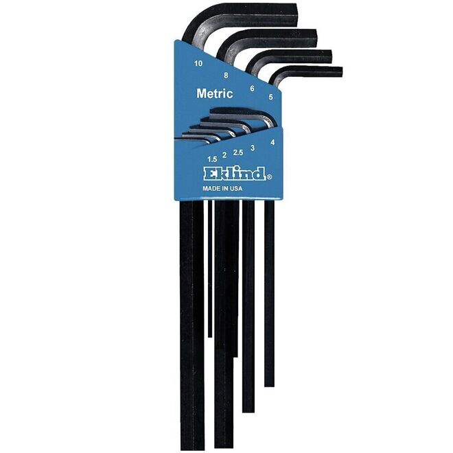• 9 llaves cortas en L punta plana (métrico): 1.5, 2, 2.5, 3, 4, 5, 6, 8, & 10 mm