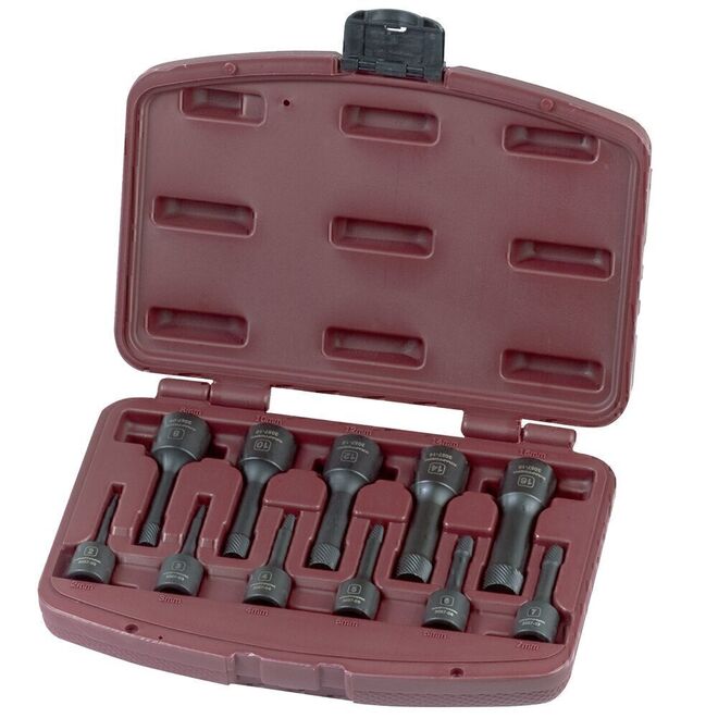• Juego de extractores para tornillos rotos 3/8"+1/2", 11 pzas.