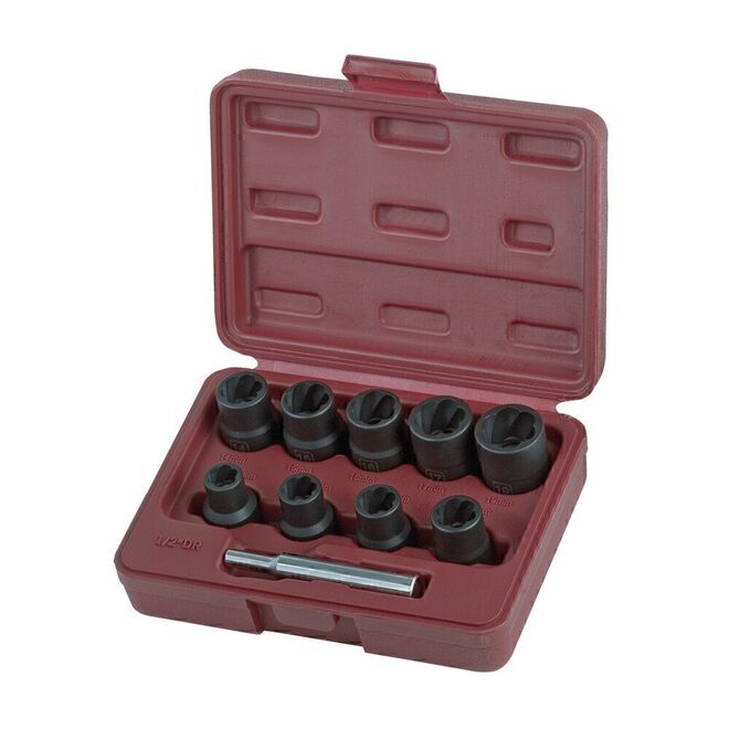 • Juego de extractores para tuercas dañadas, 1/2", 10 pzas.