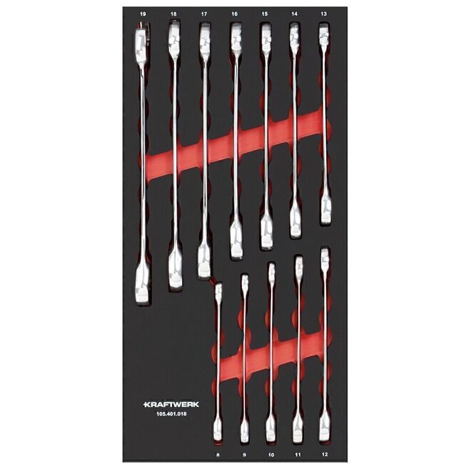 KRA105.401.018 Juego de llaves de carraca combinadas 12 pzas., Bandeja 20x40 cm