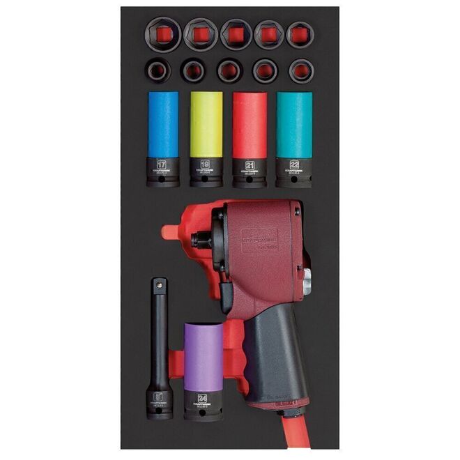 • PRO LINE Herramienta neumática 1/2", bandeja 20x40 cm, 17 pzas.