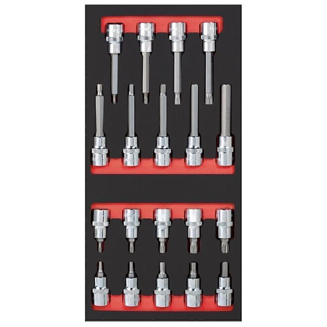 • PRO LINE Llaves de vaso para puntas 1/2", bandeja 20x40 cm, 19 pzas.