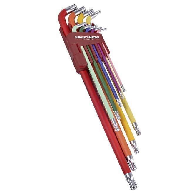 KRA307.801.009 Juego de llaves hexagonales en L, extralargas, TORX de colores, T10-T50, 9 pzas.