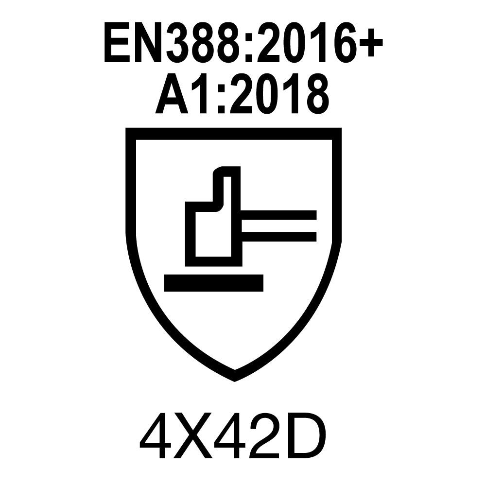 • - Resistencia al corte nivel D: fibras anticorte especiales que ofrecen elevada protección contra los cortes, manteniendo altos niveles de comodidad.