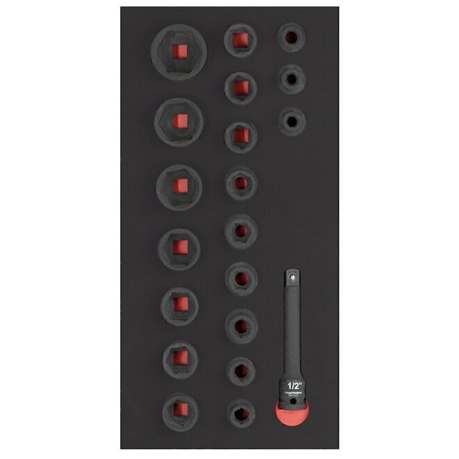 • PRO LINE Llaves de vaso de impacto, 1/2", bandeja 20x40 cm, 20 pzas.