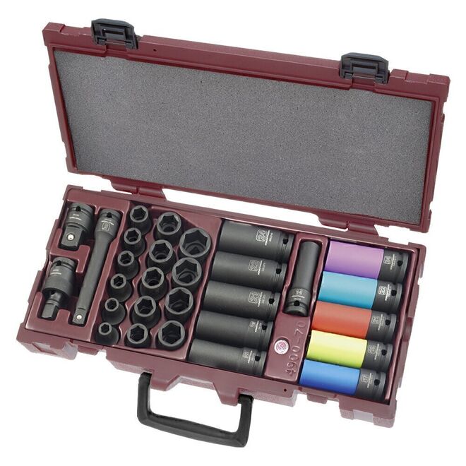 KRA4900-70K Maleta COMPLETA vasos impacto 1/2", 29 pzas.