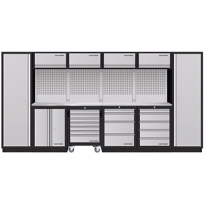• Cajones con rodamientos de bolas en varios alturas, apto para todos los bandejas de herramientas KRAFTWERK (casquillos duros COMPLETO, EVA, EVA3) con cierre centralizado y bloqueable individualmente