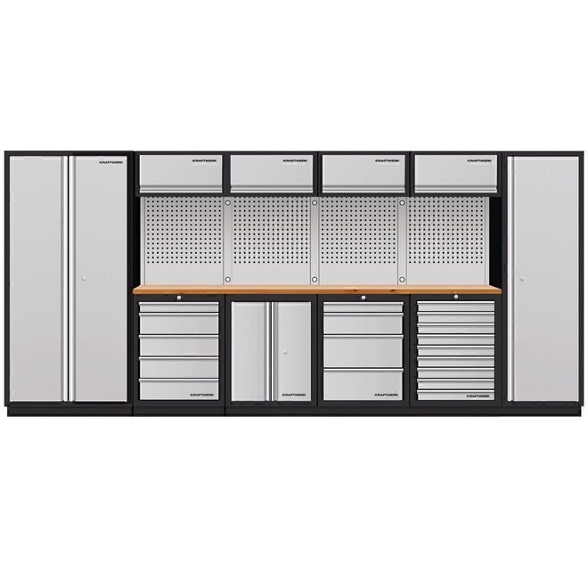 • Cajones con rodamientos de bolas en varios alturas, apto para todos los bandejas de herramientas KRAFTWERK (casquillos duros COMPLETO, EVA, EVA3) con cierre centralizado y bloqueable individualmente