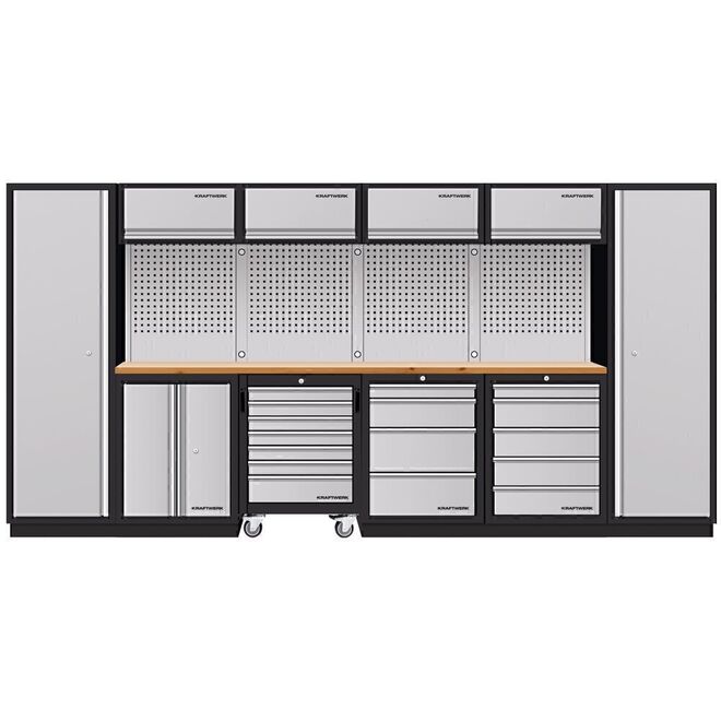 • Cajones con rodamientos de bolas en varios alturas, apto para todos los bandejas de herramientas KRAFTWERK (casquillos duros COMPLETO, EVA, EVA3) con cierre centralizado y bloqueable individualmente