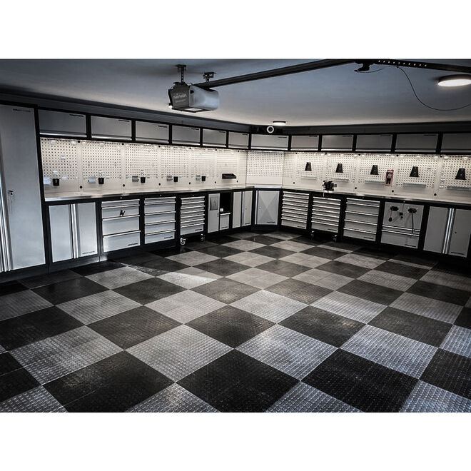 • Amplia gama de accesorios para combinar los paneles traseros con los cuadrados agujeros para el almacenamiento profesional de herramientas
