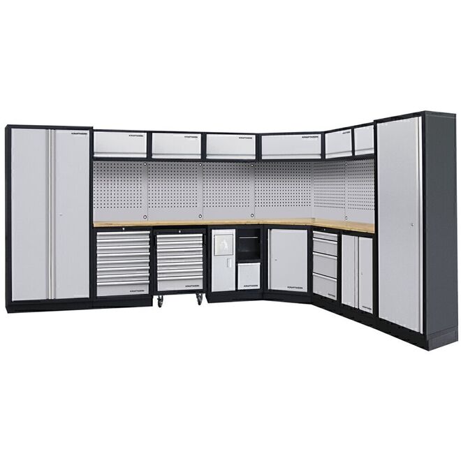 • Cajones con rodamientos de bolas en varios alturas, apto para todos los bandejas de herramientas KRAFTWERK (casquillos duros COMPLETO, EVA, EVA3) con cierre centralizado y bloqueable individualmente
