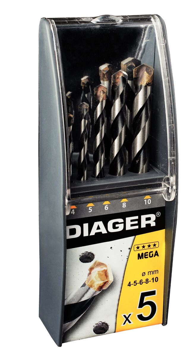D211C Estuche 5 brocas MEGA, Ø 4-5-6-8-10 mm