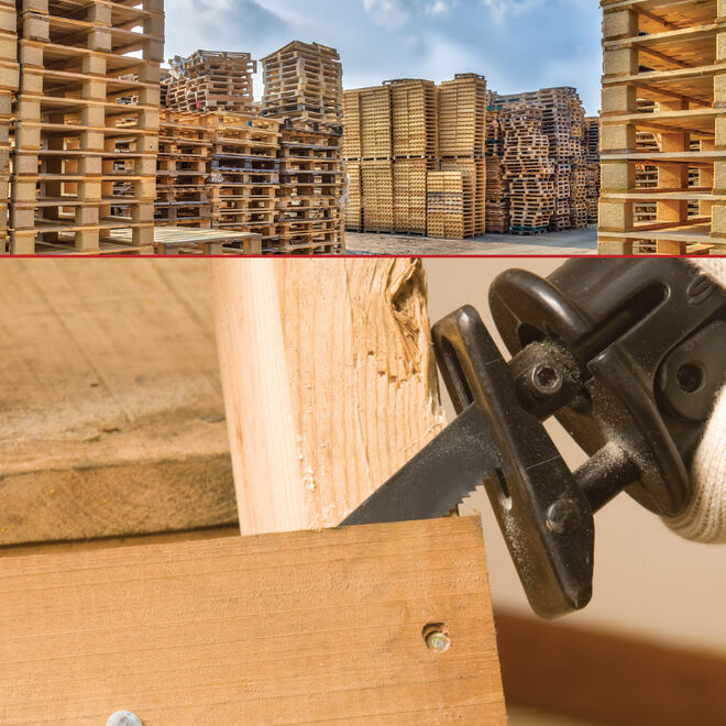 • Sierras de sable Bi-metal especialmente diseñadas para el corte de palets